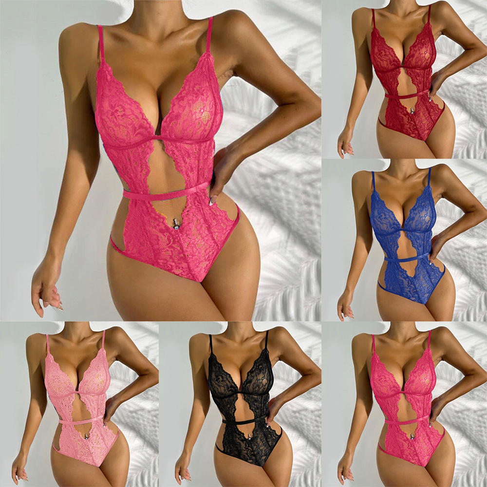 Seksowne jednoczęściowe prześwitujące koronkowe body.