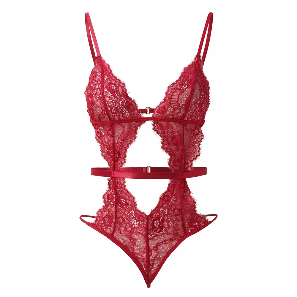 Ekskluzywne koronkowe body paskowe Walentynki Święta ciemny czerwony