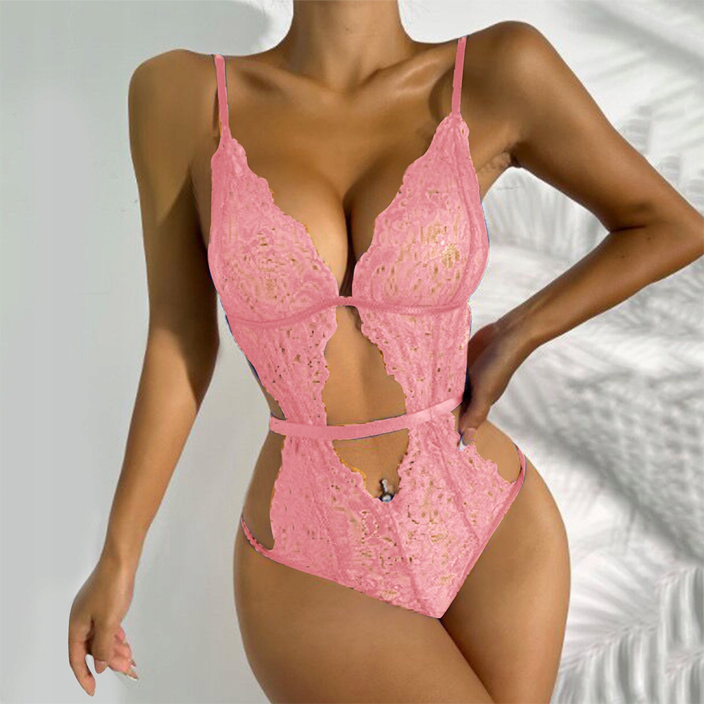 Ekskluzywne koronkowe body paskowe Walentynki Święta jasny różowy