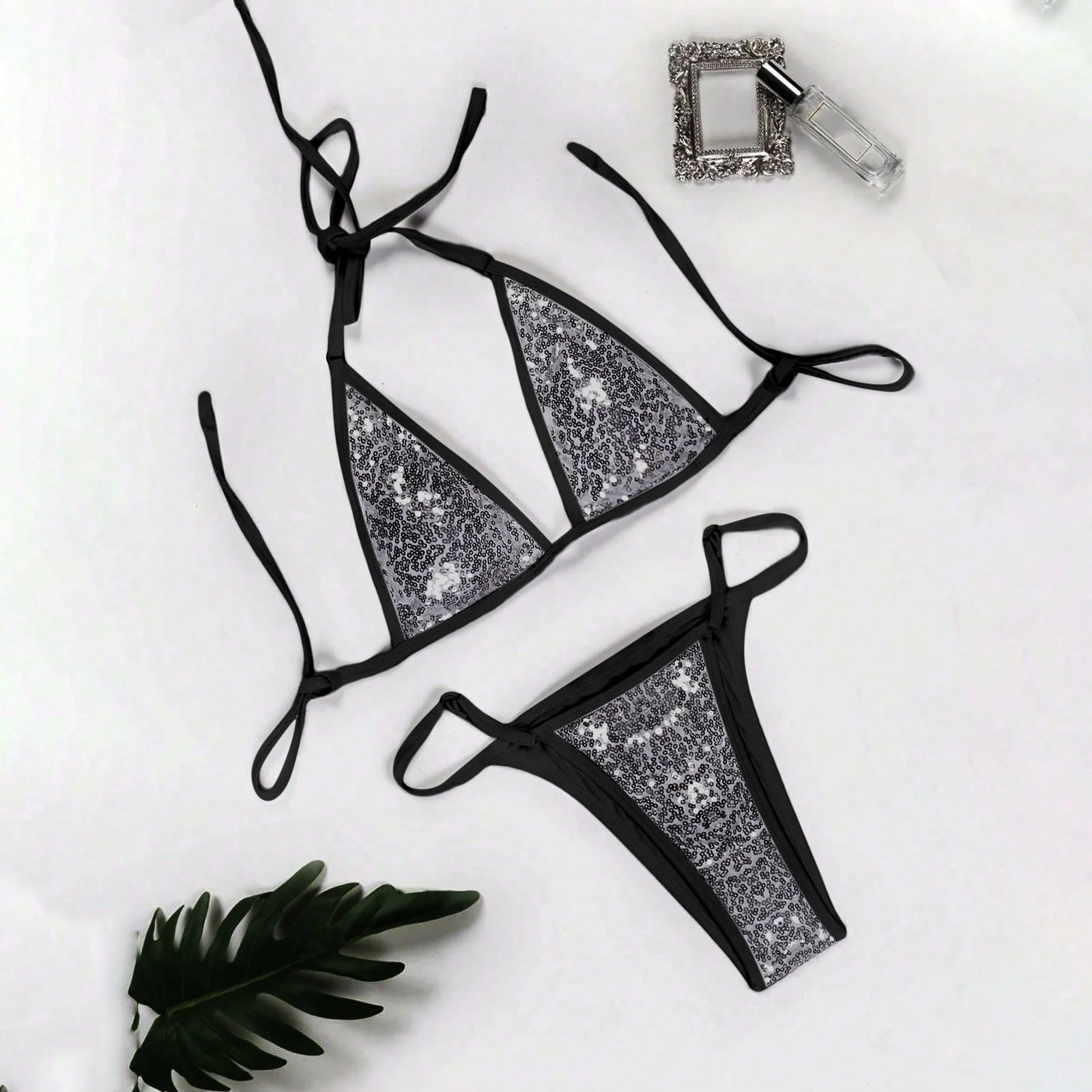 Przedmiotem sprzedaży jest seksowne dwuczęściowe bikini z cekinami.