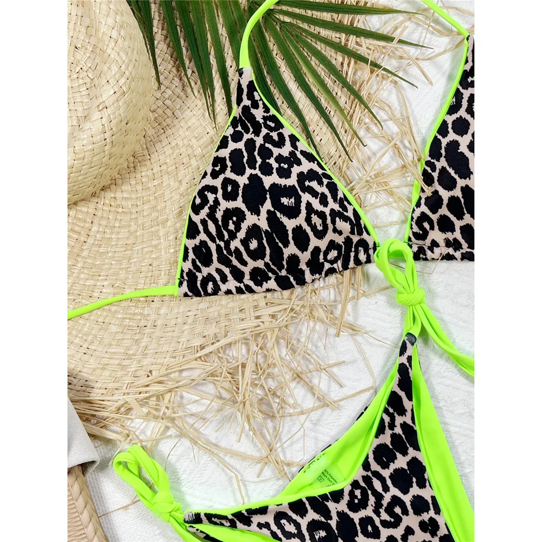 Kos bikini wiązane na plażę strój kąpielowy panterka zielona obwódka