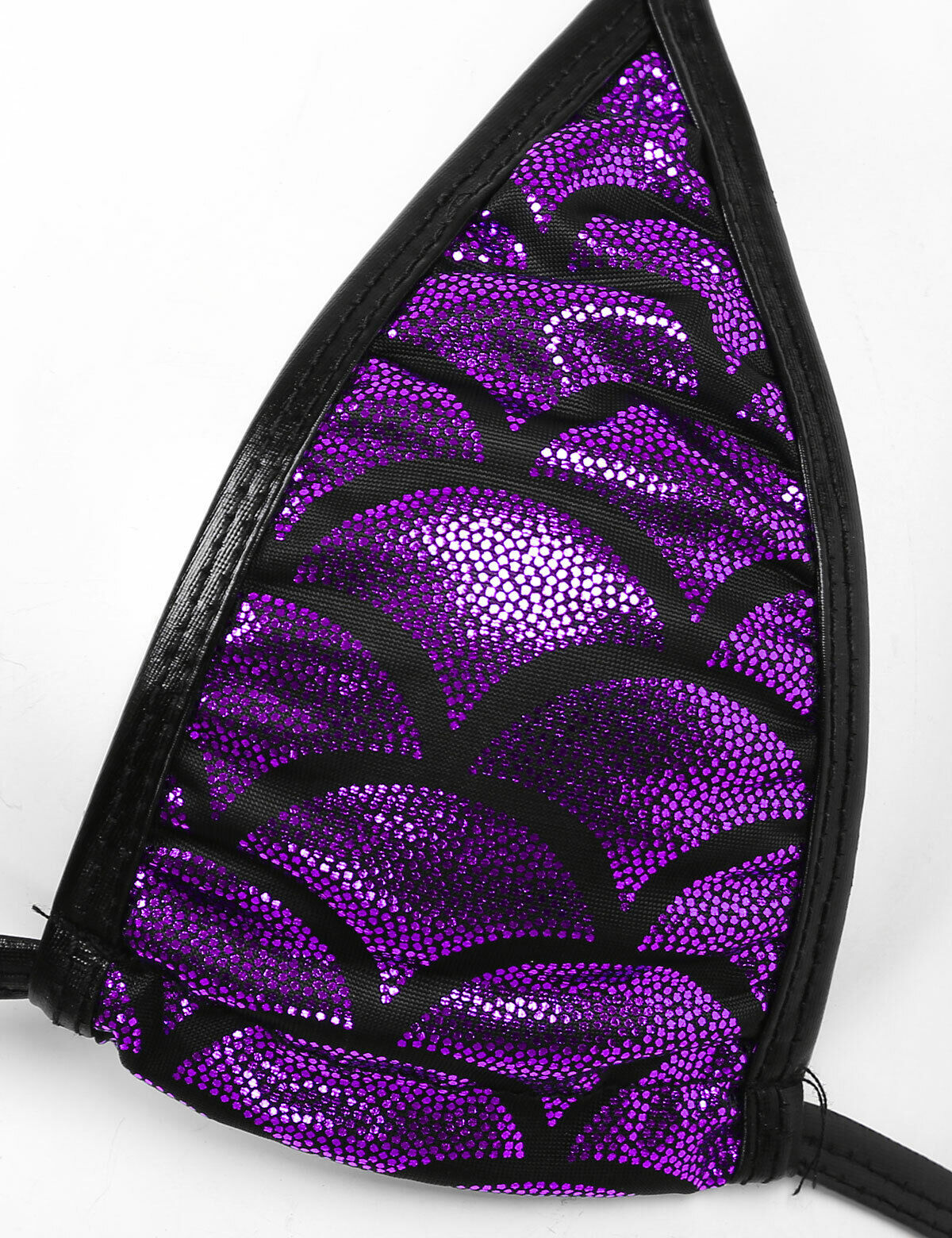 Micro bikini monokini wiązane modne na plażę strój kąpielowy łuska fioletowy