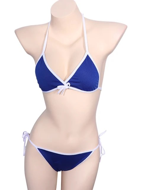 Minorka bikini wiązane plaża strój kąpielowy prosty biała obwódka granatowy