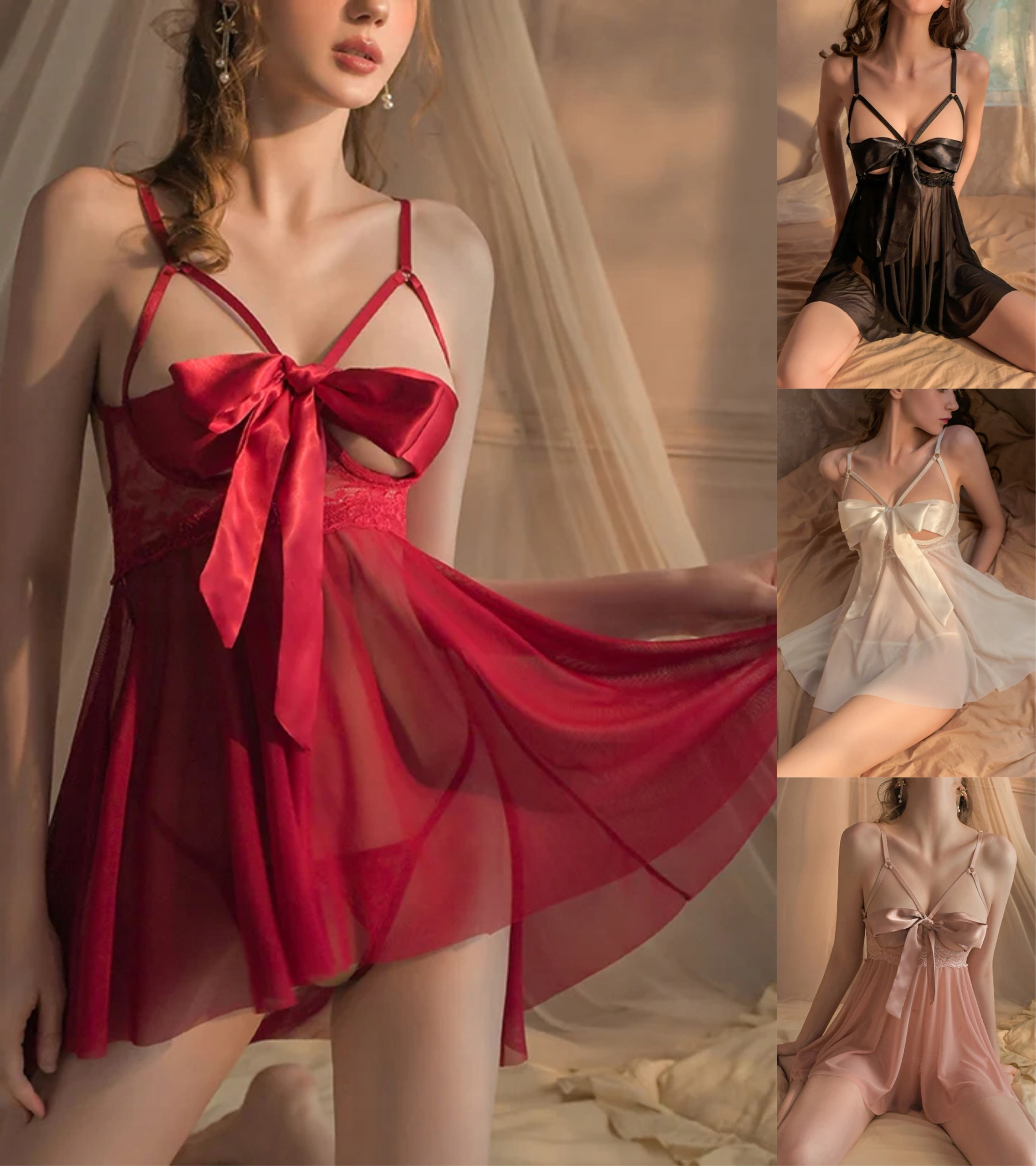 | Model | Prześwitująca koszulka nocna kokarda koronka |