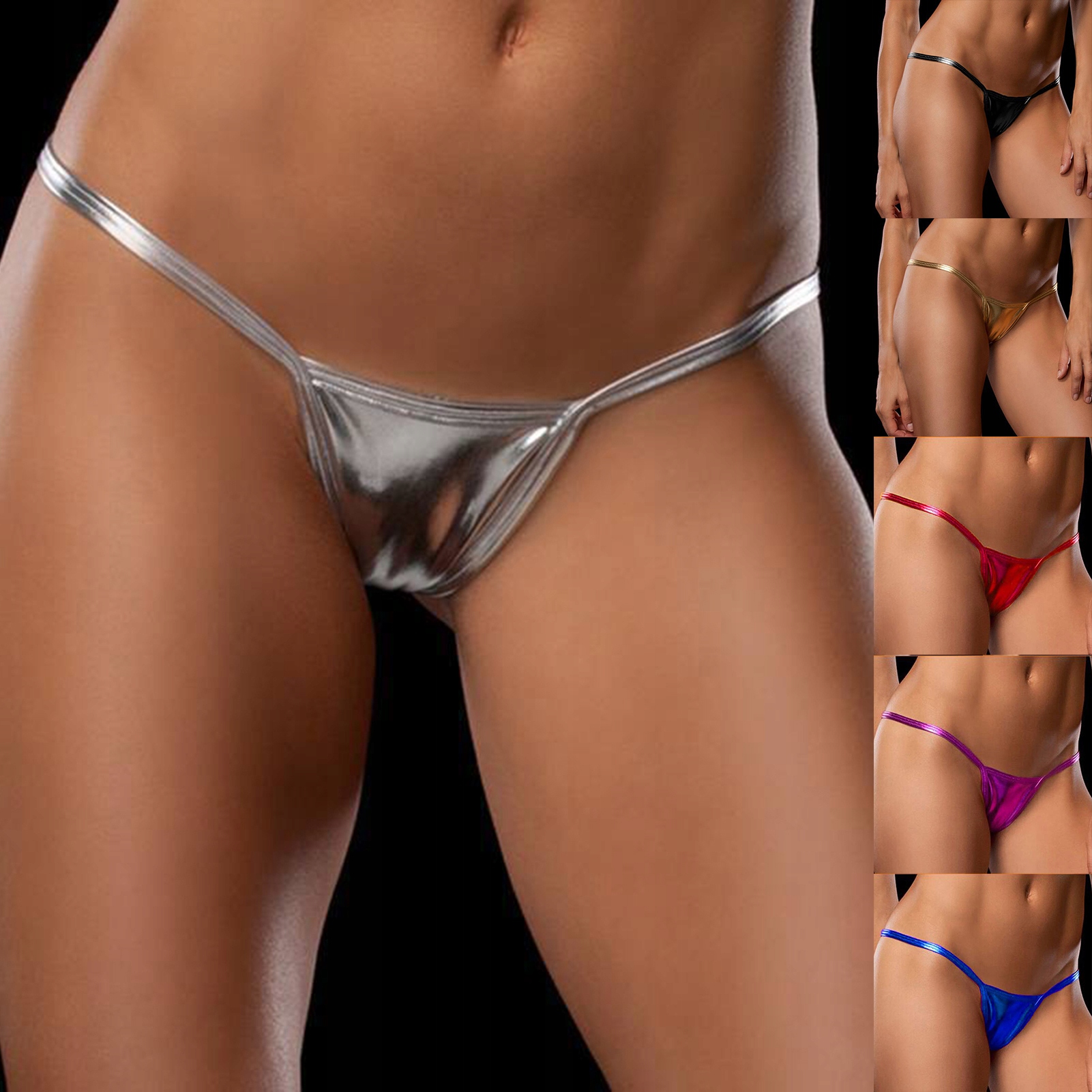Przedmiotem sprzedaży są seksowne błyszczące stringi damskie.