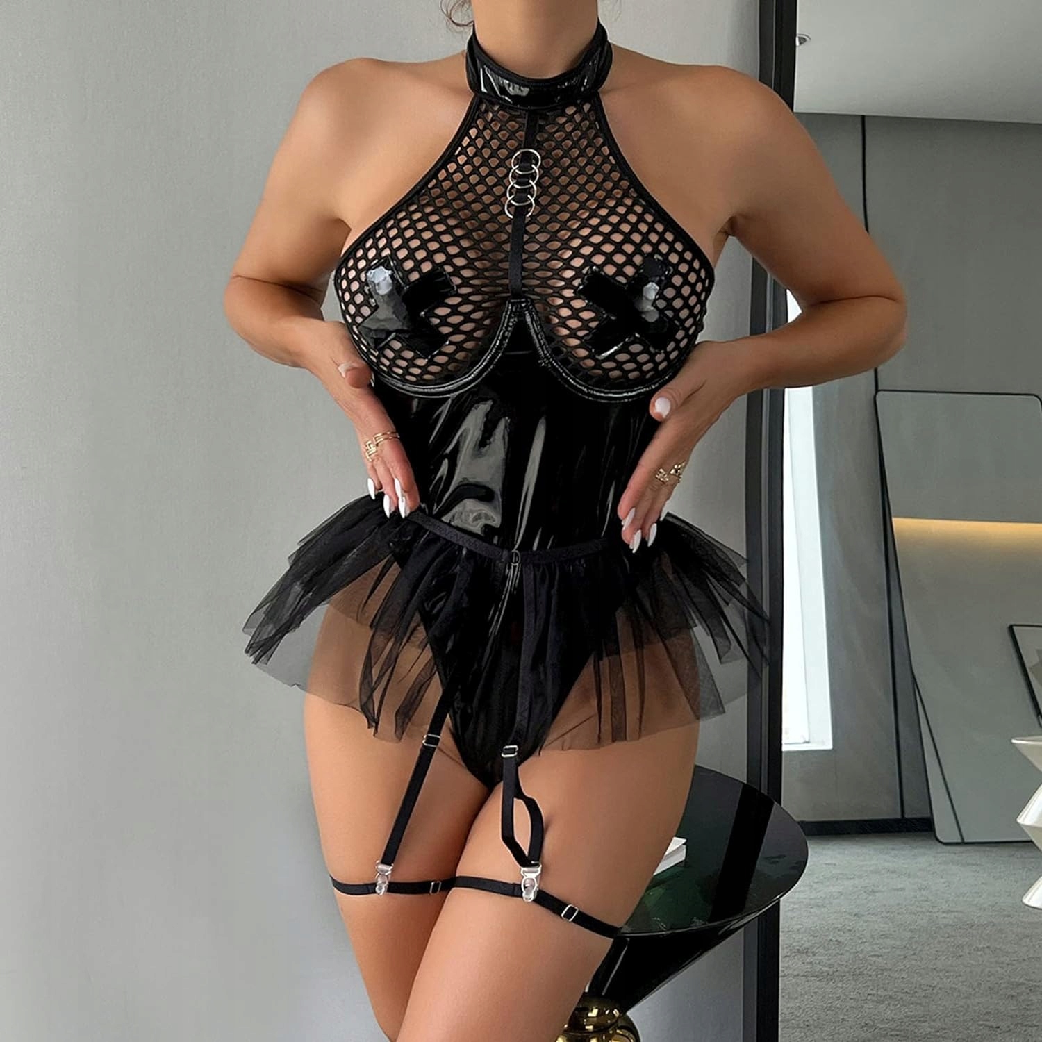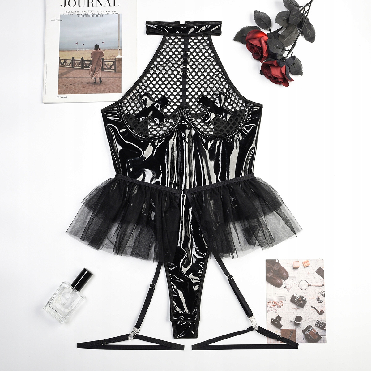 | Model | Body rozpinane BDSM imitacja skóry siatka tunika |