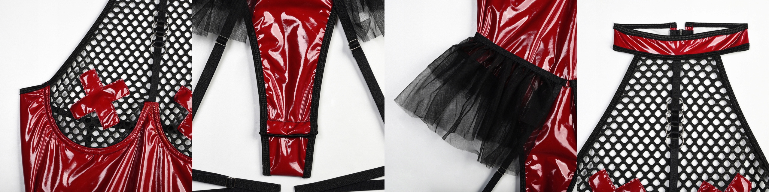 Strój w połączeniu spandexu, który ma imitować skórę, siatki oraz tiulu doda seksapilu każdej noszącej je kobiecie i pomoże rozpalić każdego mężczyznę do czerwoności…