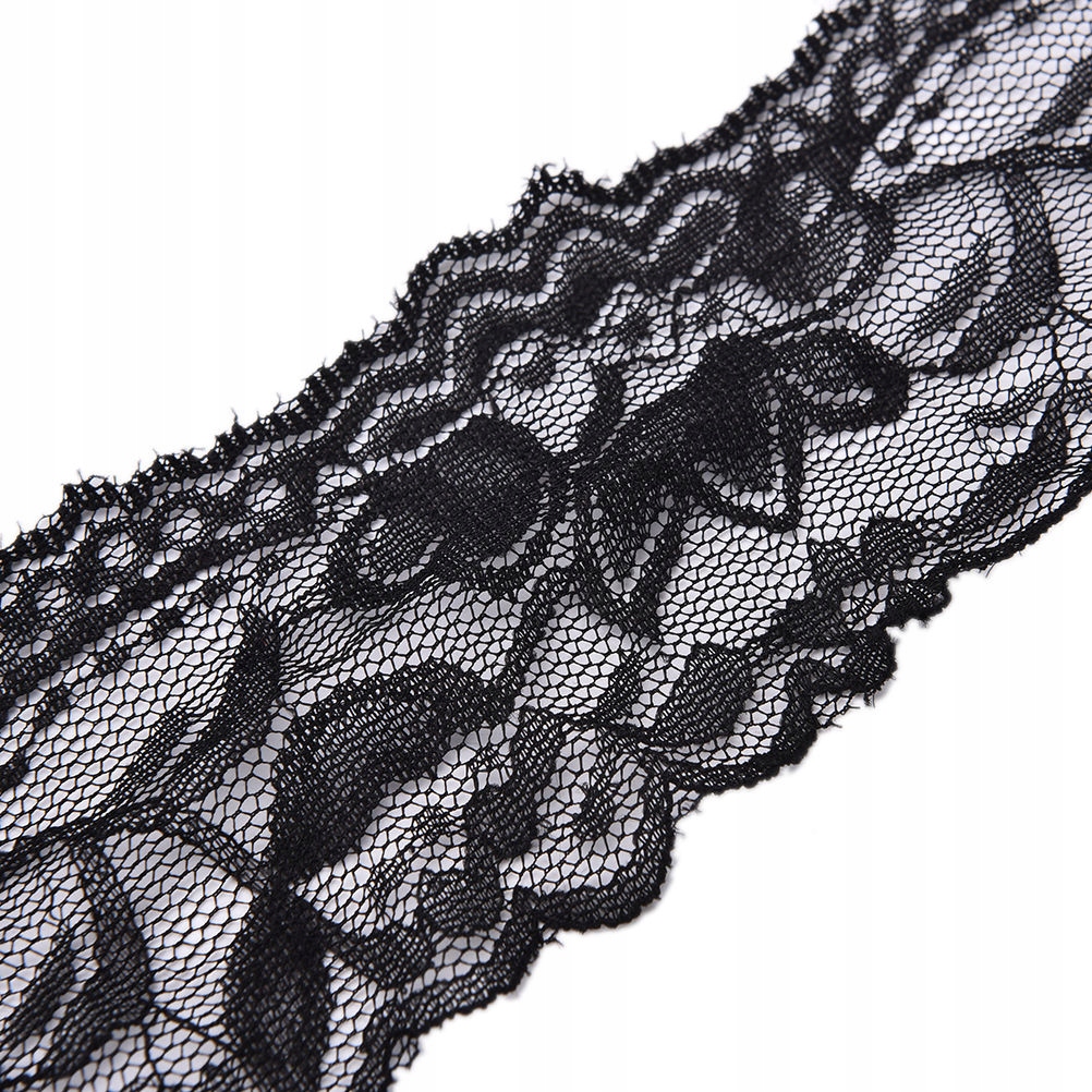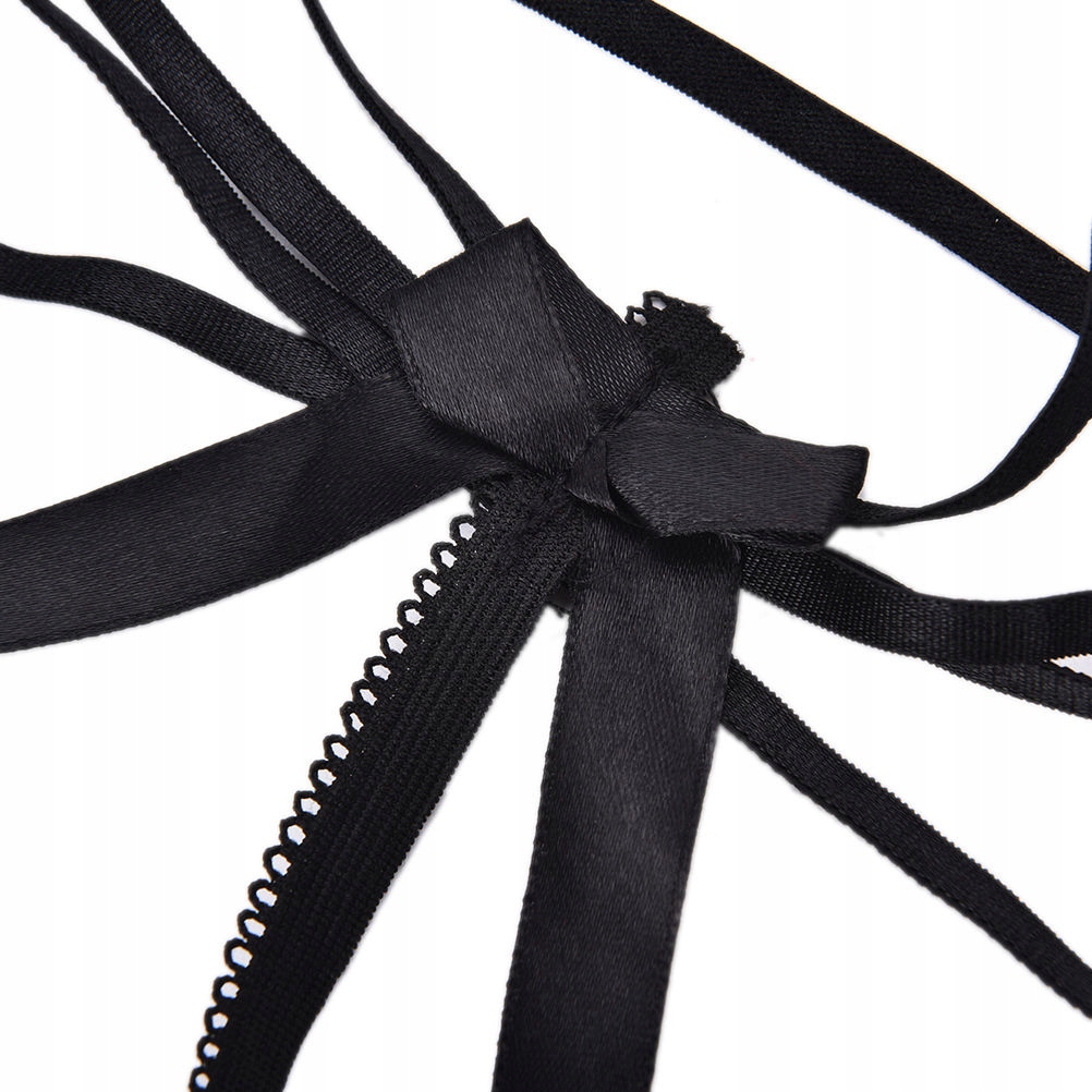 Seksowne czarne body koronka wstążka z koralikami czarny