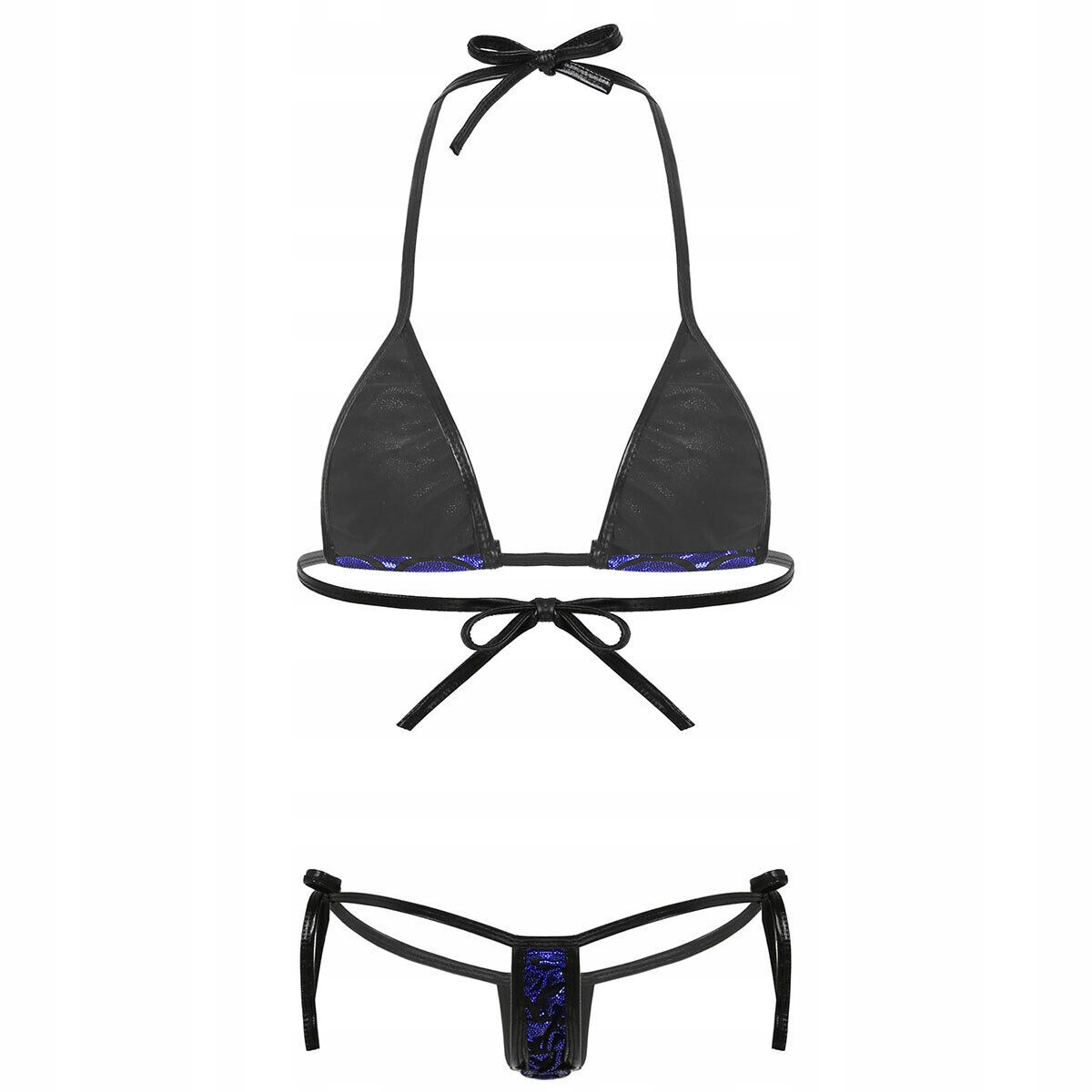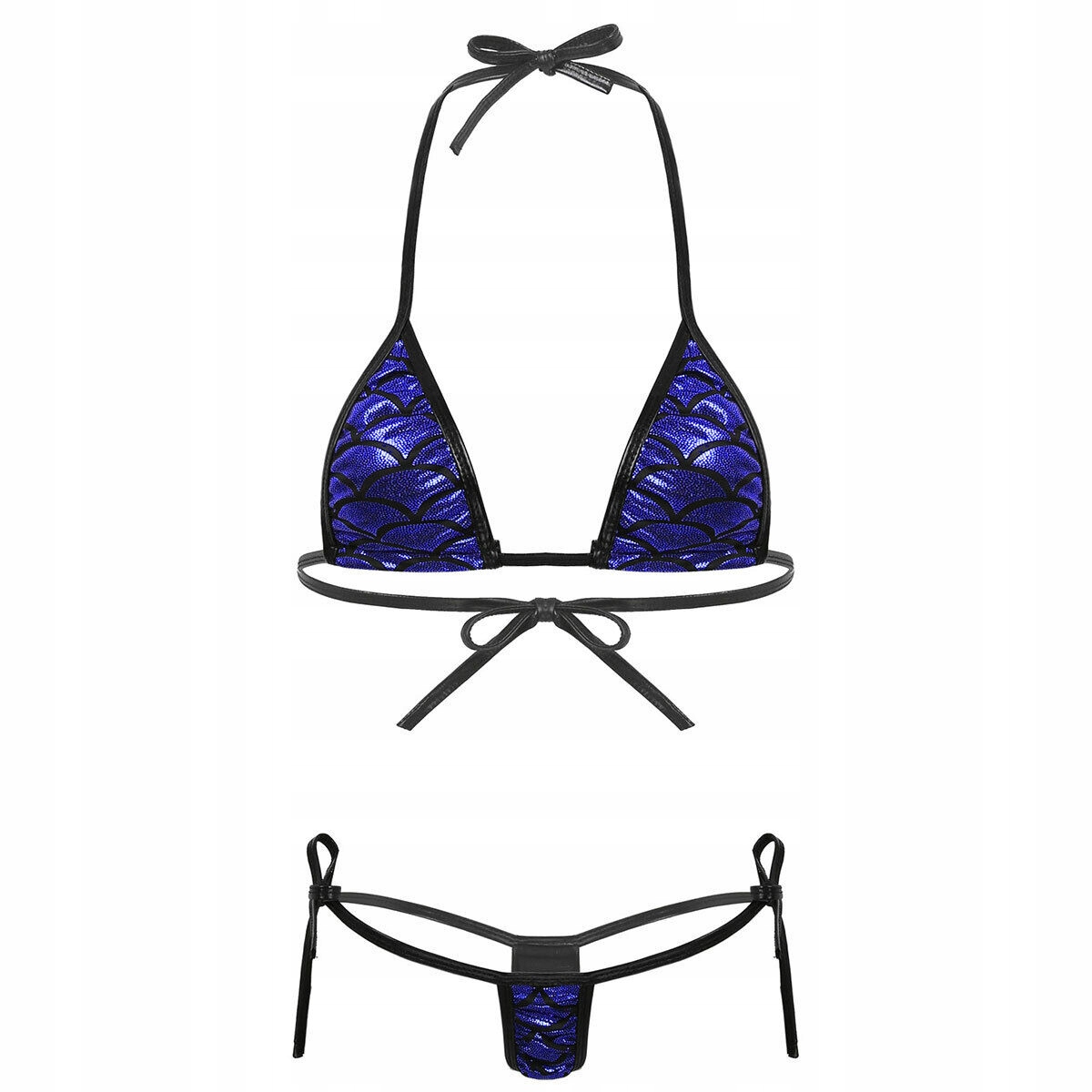 Seksowne micro bikini wiązane strój kąpielowy plaża łuska niebieski