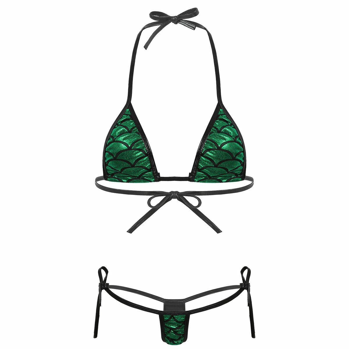 Seksowne micro bikini wiązane strój kąpielowy plaża łuska zielony