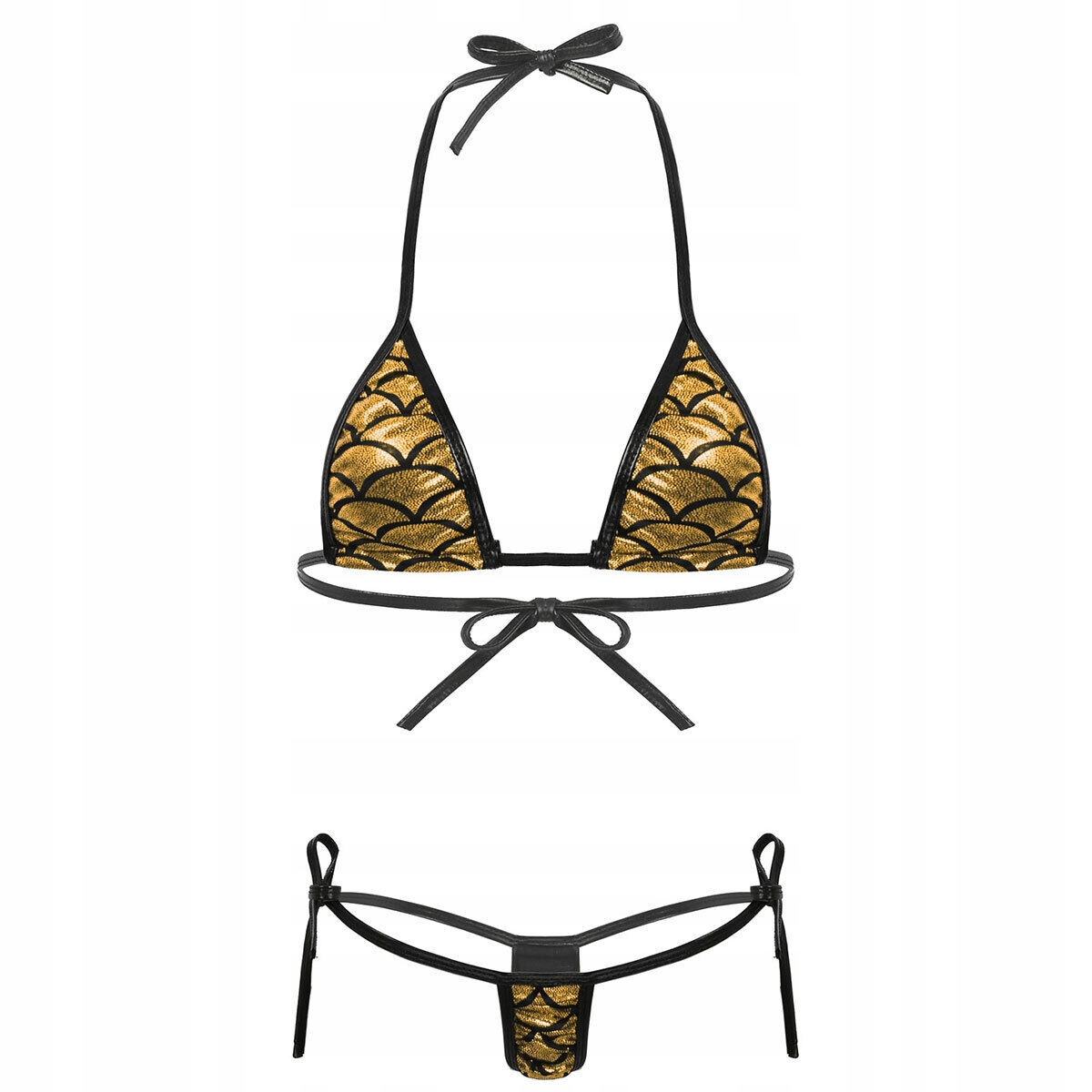 Seksowne micro bikini wiązane strój kąpielowy plaża łuska złoty