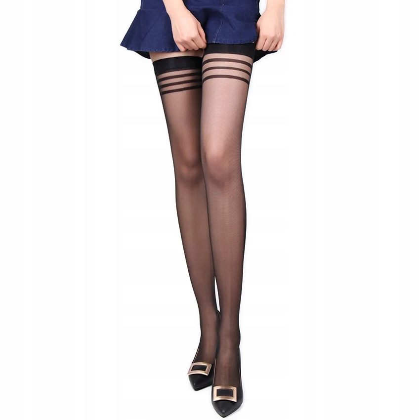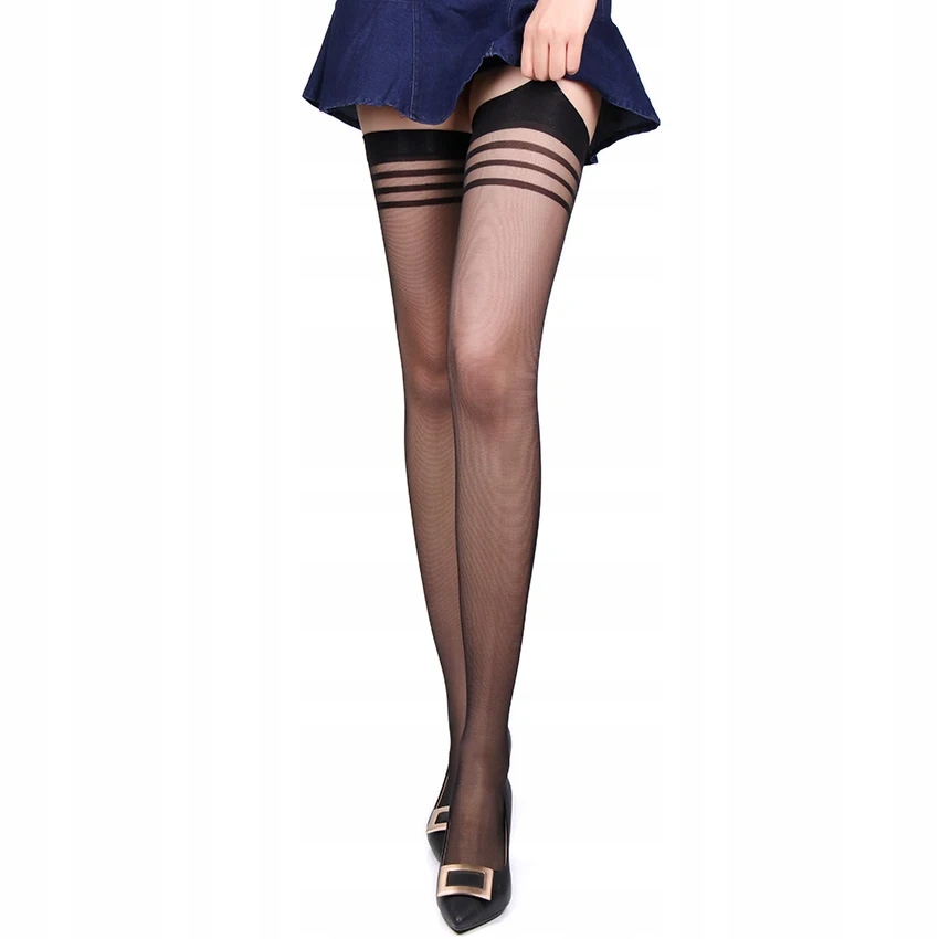 Seksowne pończochy gładkie z paskami cielisty