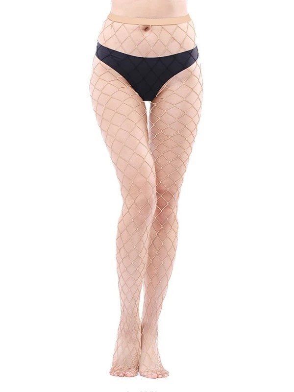 Seksowne rajstopy gładkie siatkowe kabaretki bardzo duże oczka XL beżowy