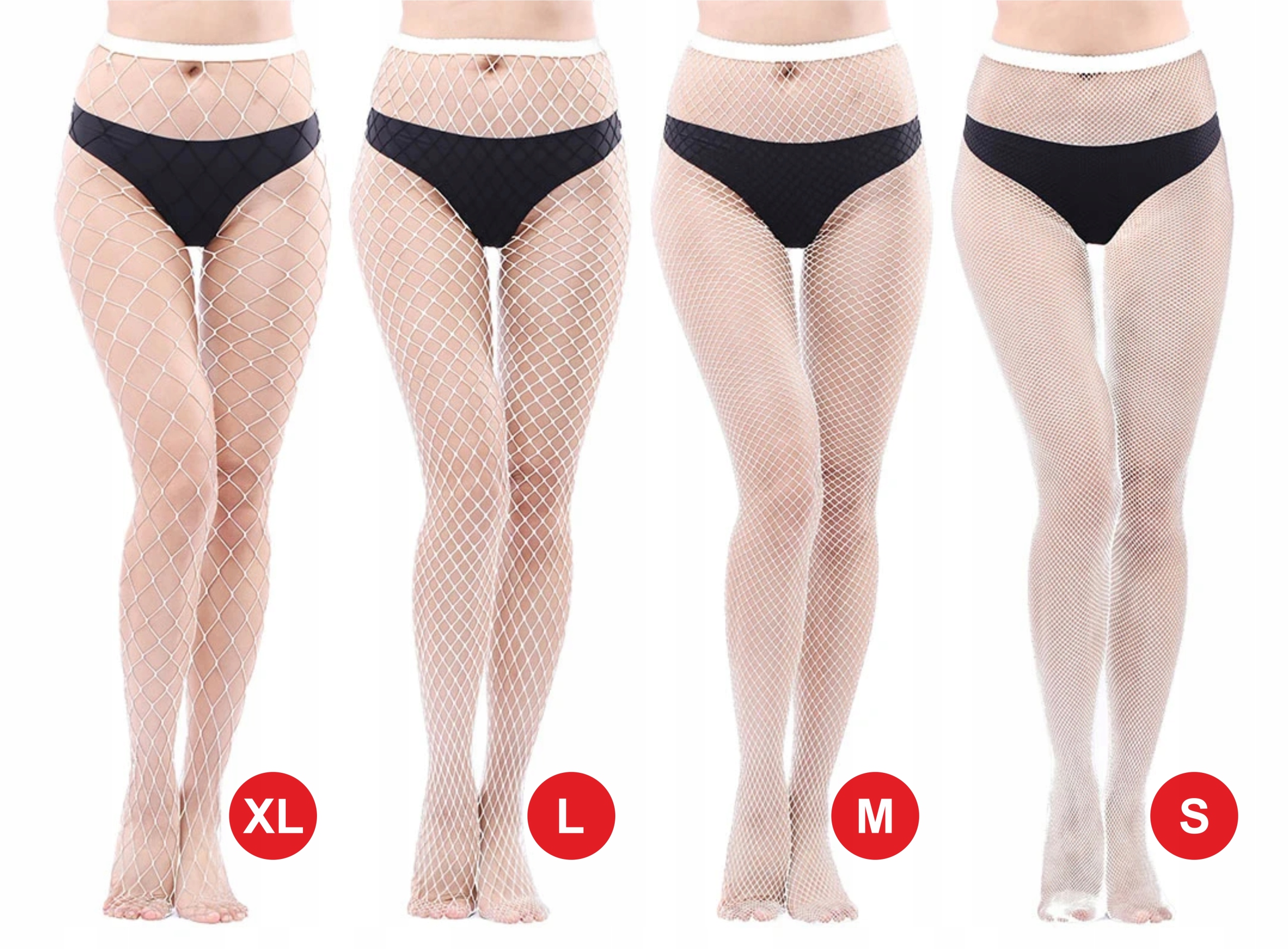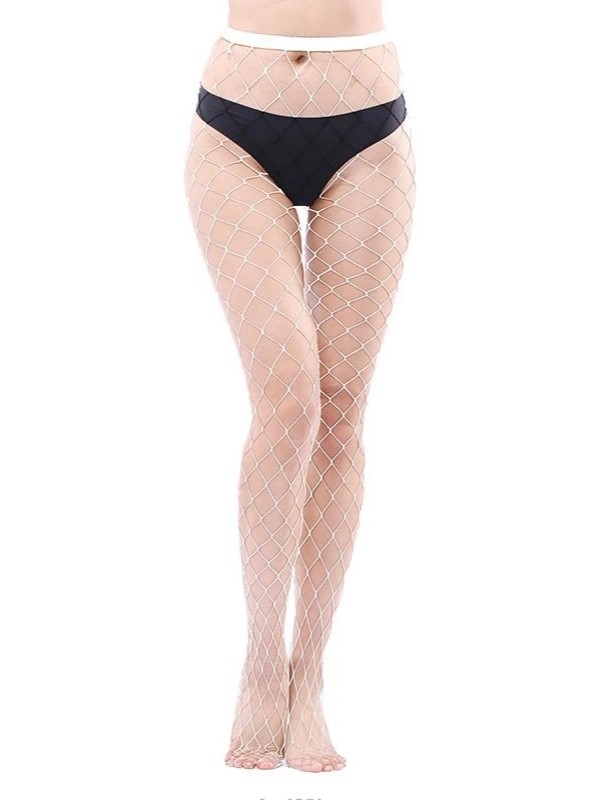 Seksowne rajstopy gładkie siatkowe kabaretki bardzo duże oczka XL biały