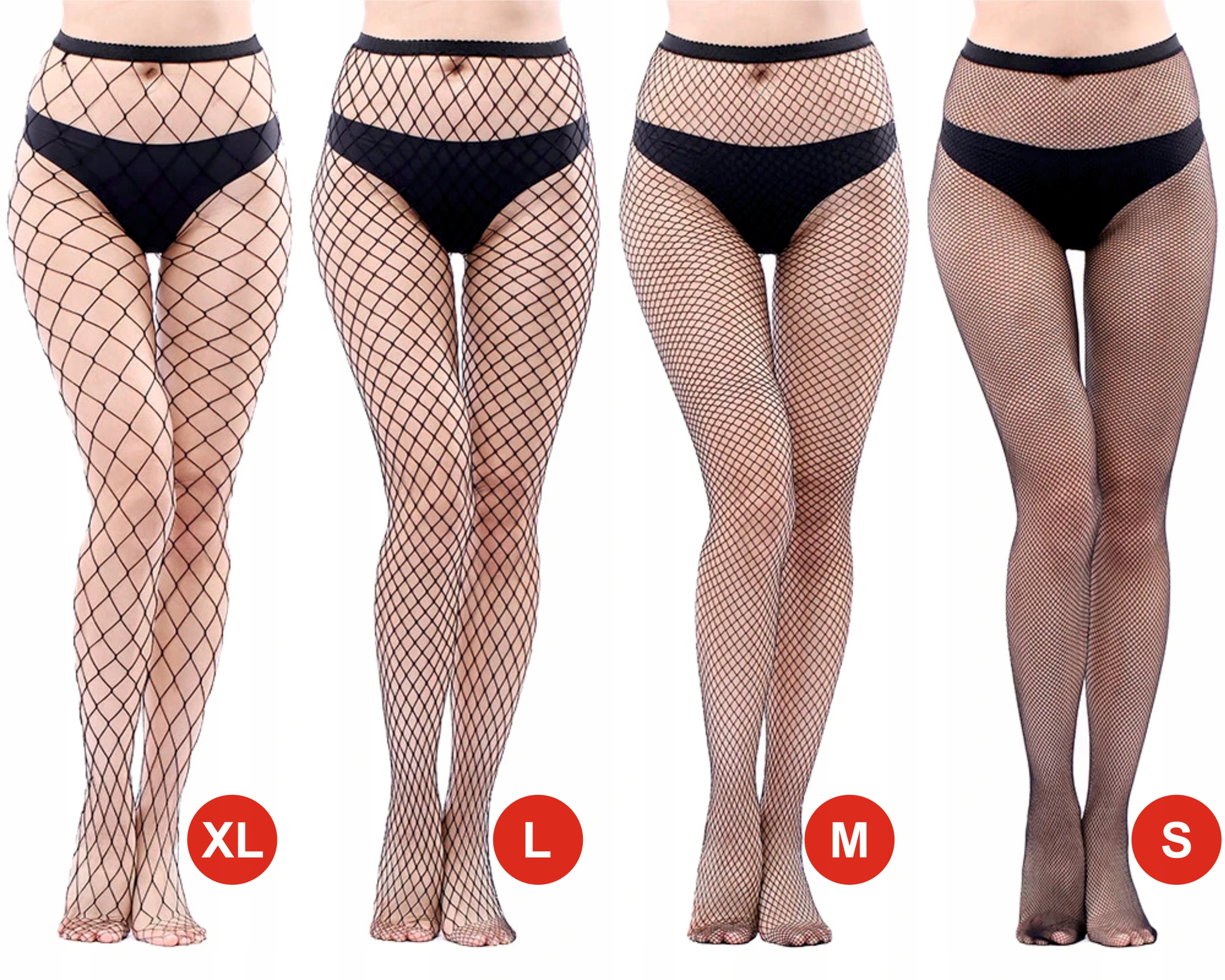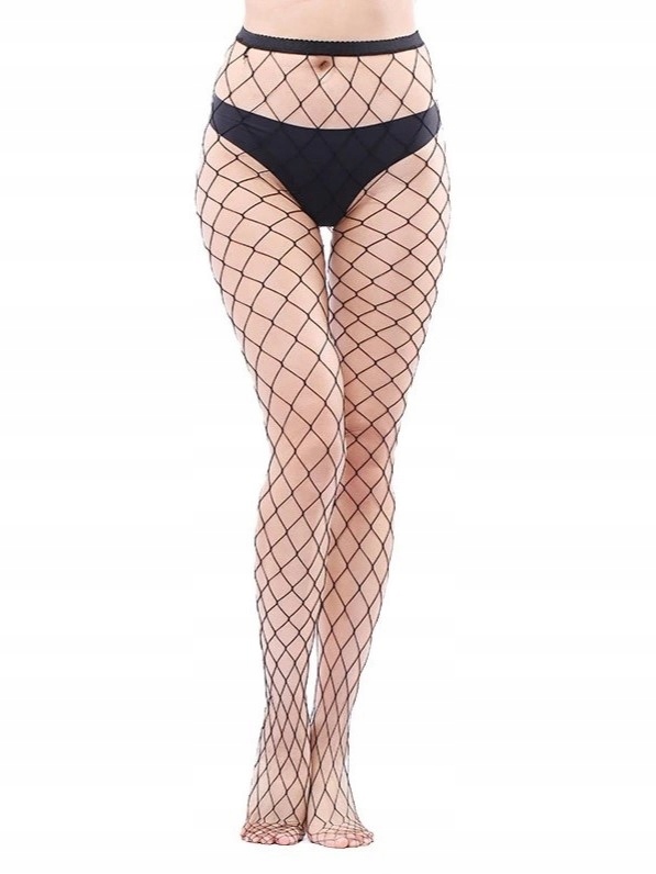 Seksowne rajstopy gładkie siatkowe kabaretki bardzo duże oczka XL czarne