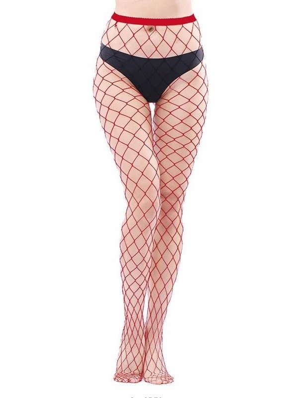 Seksowne rajstopy gładkie siatkowe kabaretki bardzo duże oczka XL czerwony