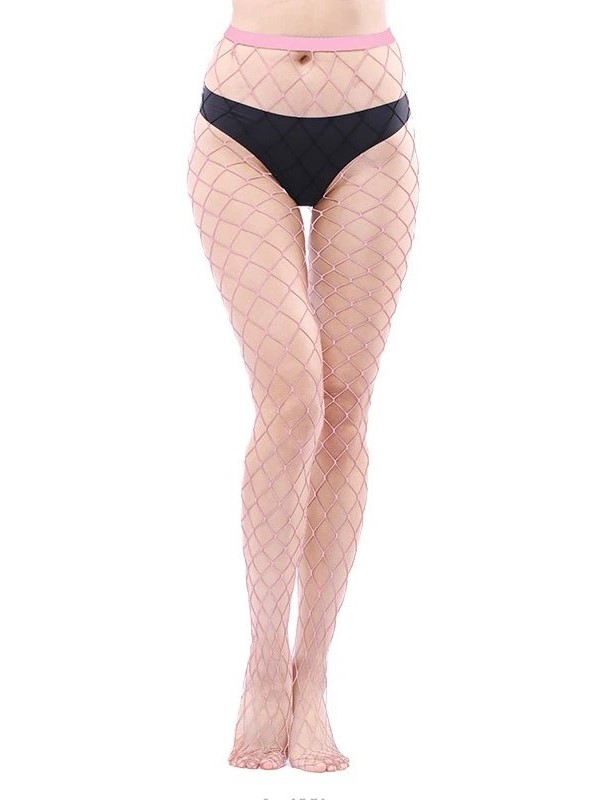 Seksowne rajstopy gładkie siatkowe kabaretki bardzo duże oczka XL j różowy