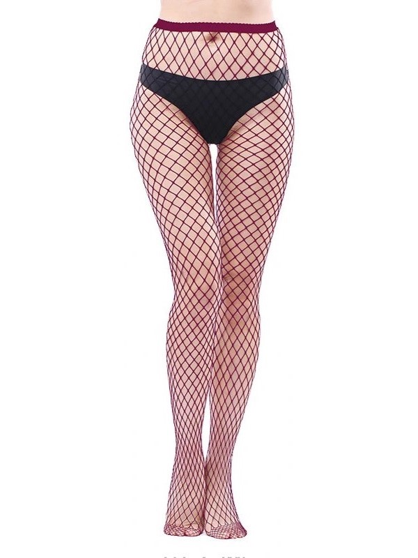 Seksowne rajstopy gładkie siatkowe kabaretki małe oczka L ciemny czerwony