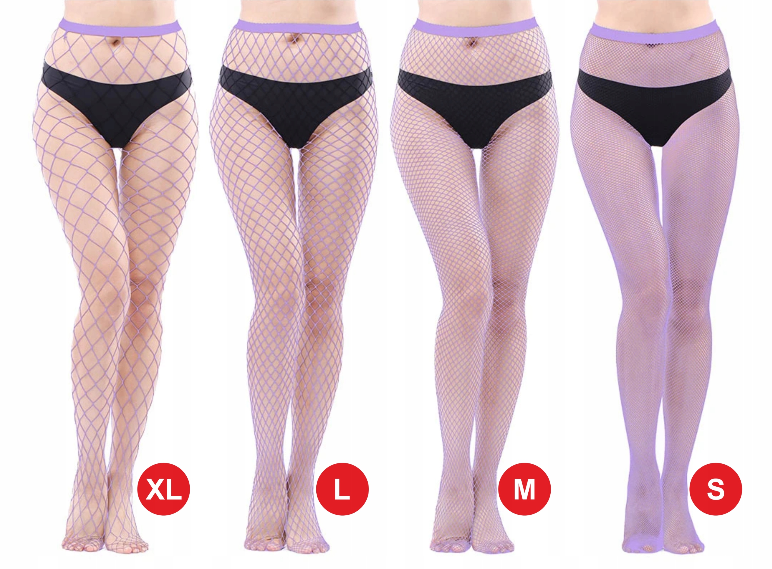 Seksowne rajstopy gładkie siatkowe kabaretki małe oczka S fioletowy