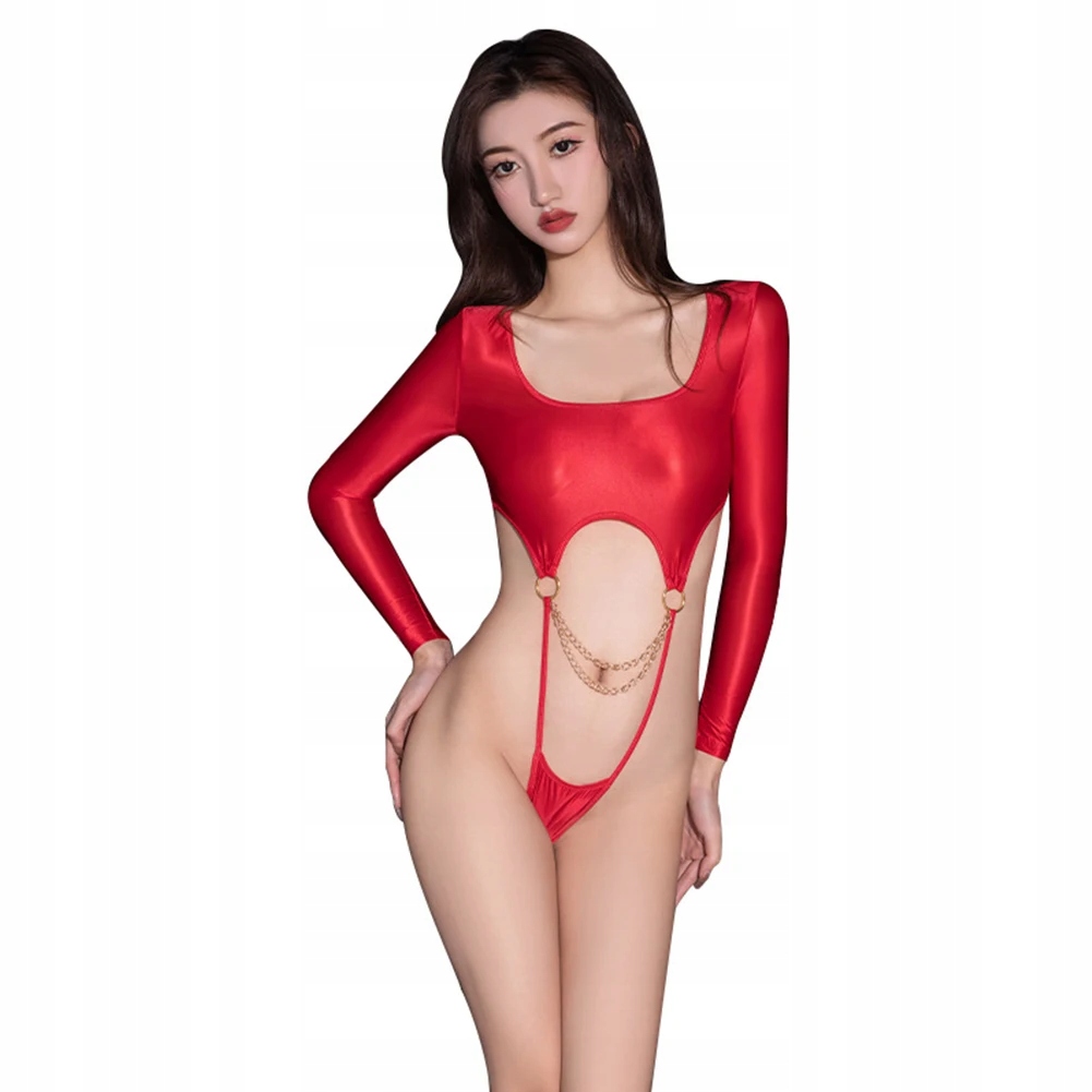 Seksowne sznurkowe body otwarte z długim rękawem czerwony