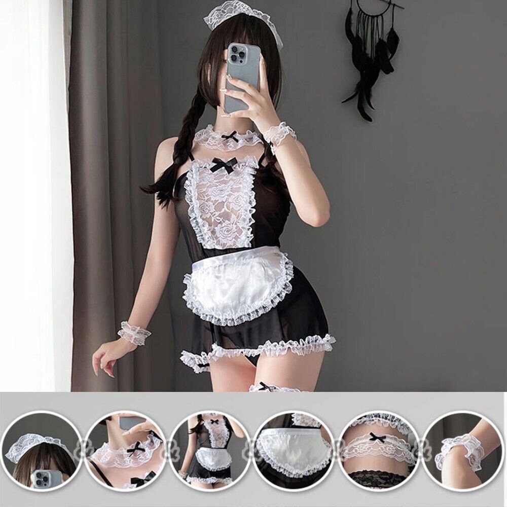 Seksowny komplet 8-częściowy kostium przebranie pokojówka Walentynki Święta